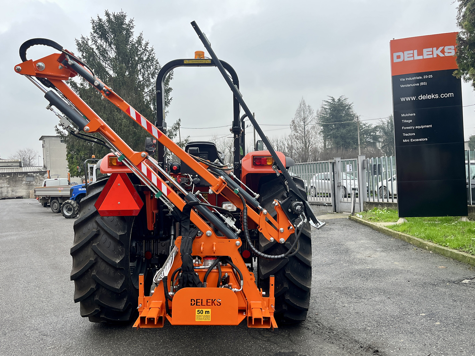 Hydraulischer Arm, Böschungsmähwerk, Heckenschere - DELEKS® - Made in Italy - Kabellose Steuersystem - Doppelte Hydraulikpumpe - Unabhängiges Hydrauliksystem - Er kann einen 130-160-180 cm langen Mähbalken montieren.