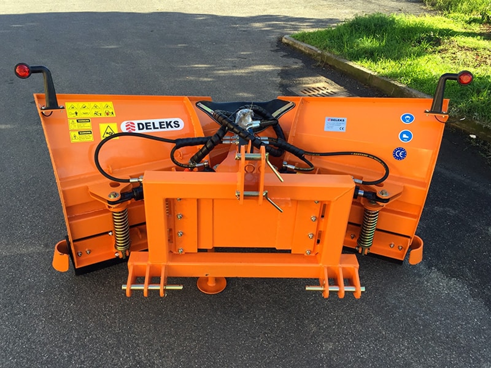 Schneepflug mit hydraulischer Steuerung und Dreipunktaufnahme der Kategorie 1 – 2, für Traktoren von 35 bis 70 PS. Geeignet für alle mittleren Traktoren wie z.Bsp. Landini, Mistrial, Steyr, Detuz-Fahr, John Deere, Gudbrod, Fiat, Kubota, Ferrari, uvm. Räumleiste aus Gummi für schonendes Räumen, austauschbar gegen Stahl, 2 Hydraulikschläuche 2,0 m, mit Schnellwechselkupplung, Stützfuss, Begrenzungsleuchten. Mit CE – Zertifizierung und 2 Jahren Garantie.