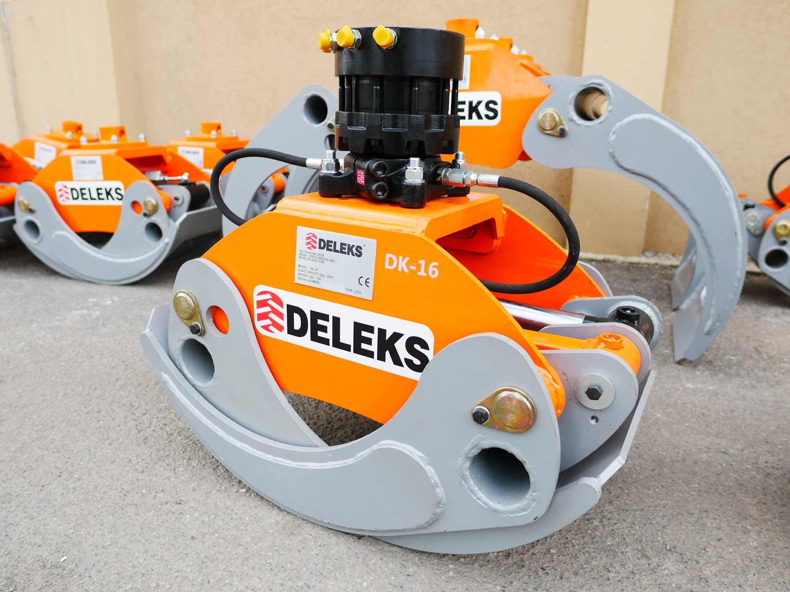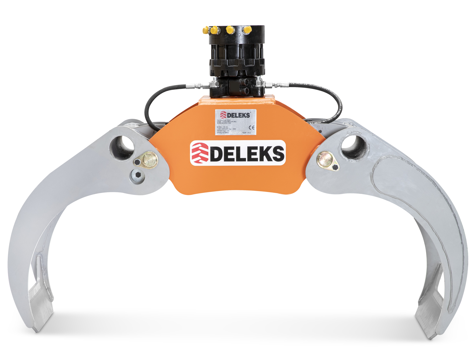Holzzange, Holzgreifer für Kräne und Mini-Bagger 4,0 bis 8,0t DELEKS® DK-16 + GR-55FF  Rotor Lombarda Ingranaggi