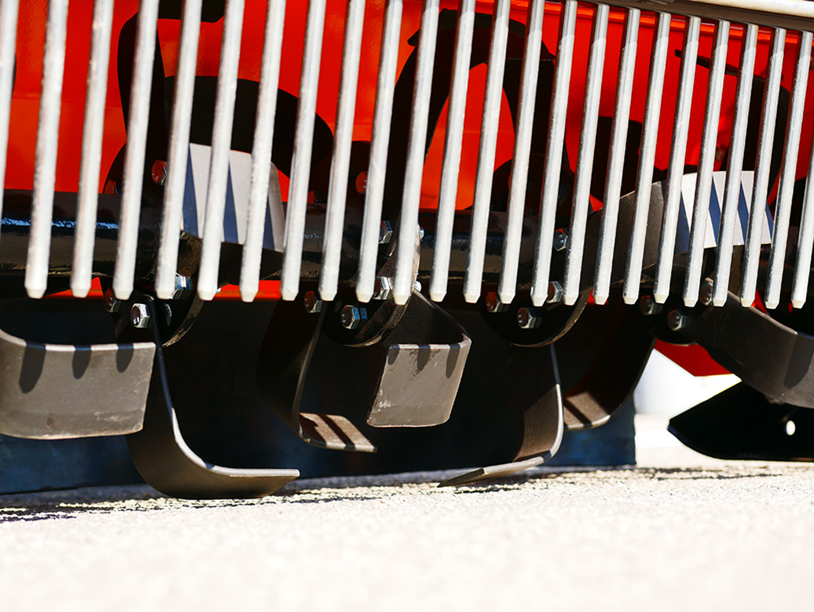 Contraroterende rotor met 4 haakse maaimessen per flens.