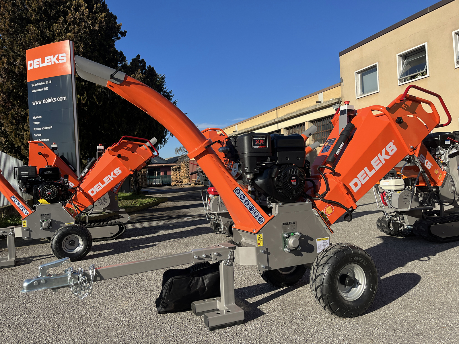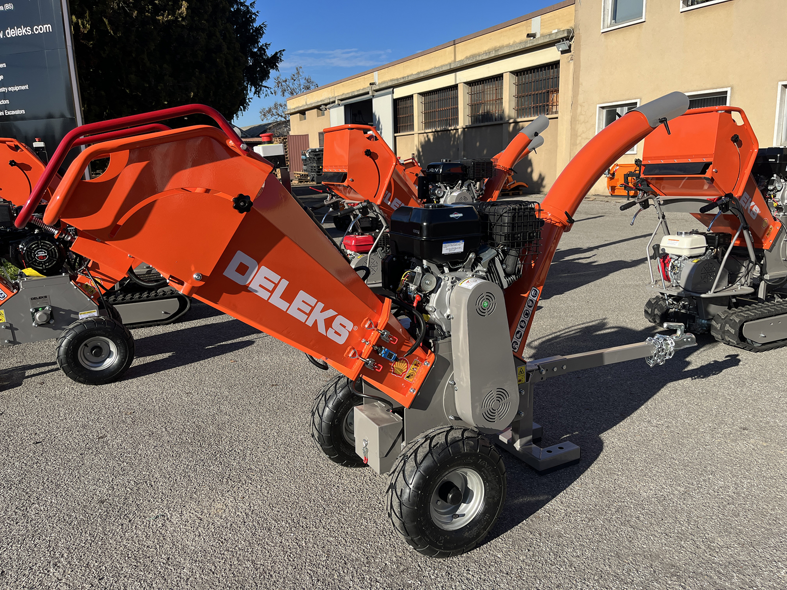 Professionele houthakselaar DELEKS houtversnipperaar met zelfstandige 13.5 pk 4-takt B&S benzinemotor.
