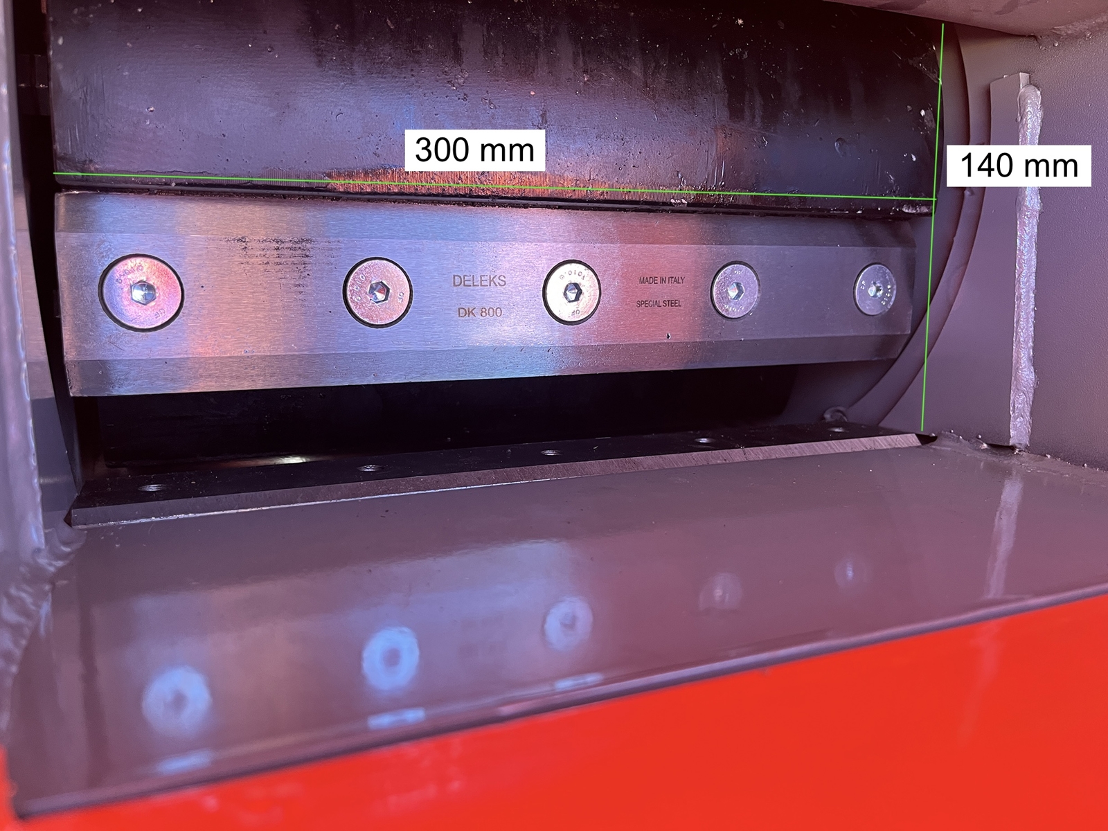 Hakselaar uitgerust met 2 omkeerbare messen en een tegenmes geschikt voor het versnipperen van groen en droog hout van verschillende soorten.