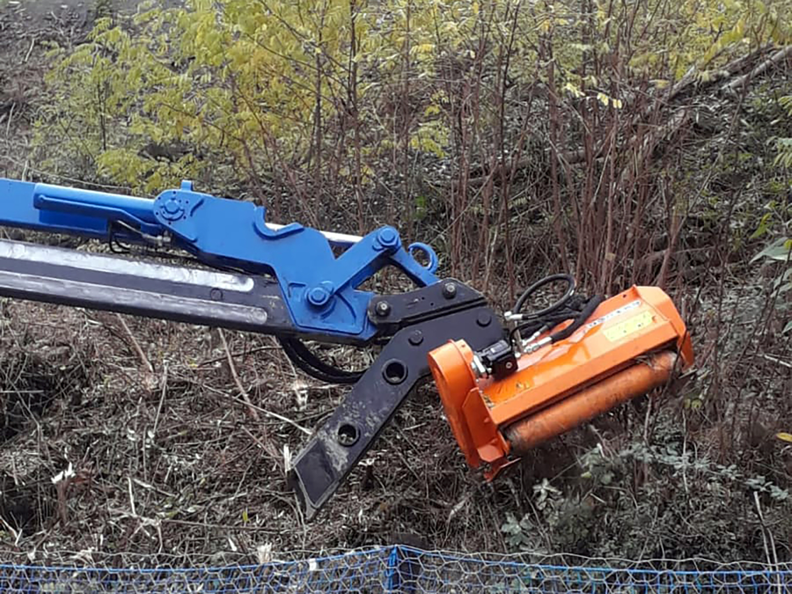 Hydraulic threscher, brush-cutter for brambles, bushes, ditches, banks, embankments, branches. Suitable for cutting grass, trees and shrubs up to 5cm.