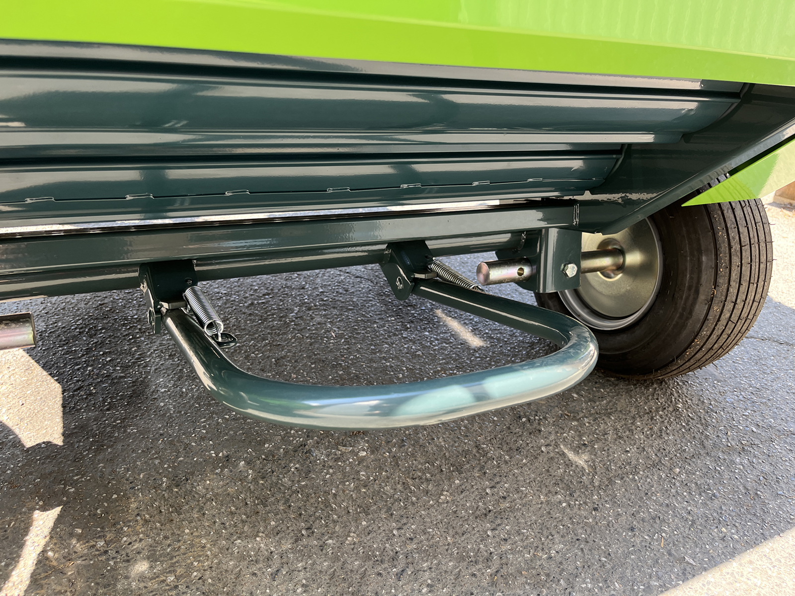 Die Hecköffnung für den fertigen Rundballen erfolgt üver einen Arbeitzylinder. Dieser Arbeitszylinder wird angetrieben von der Eigenhydraulik der Ballenpresse.