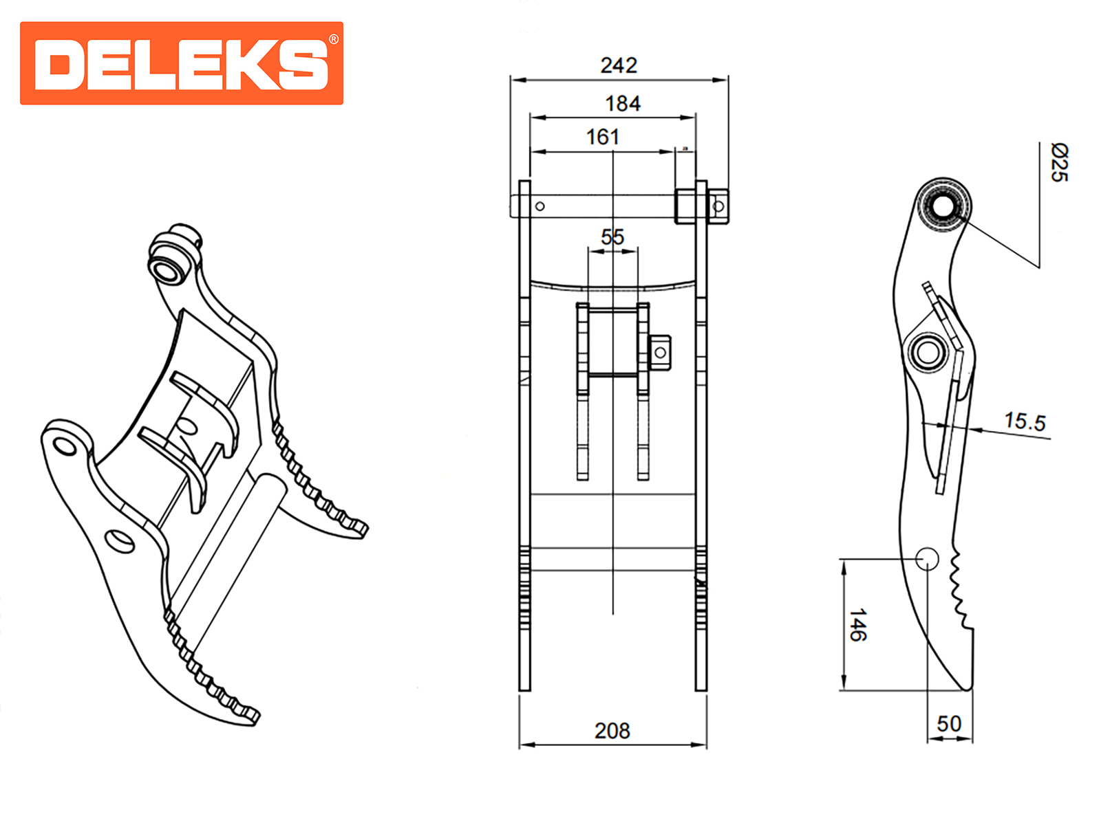 SLUITENHydraulische duim, grijper, tang voor DELEKS® S100 mini graafmachine.