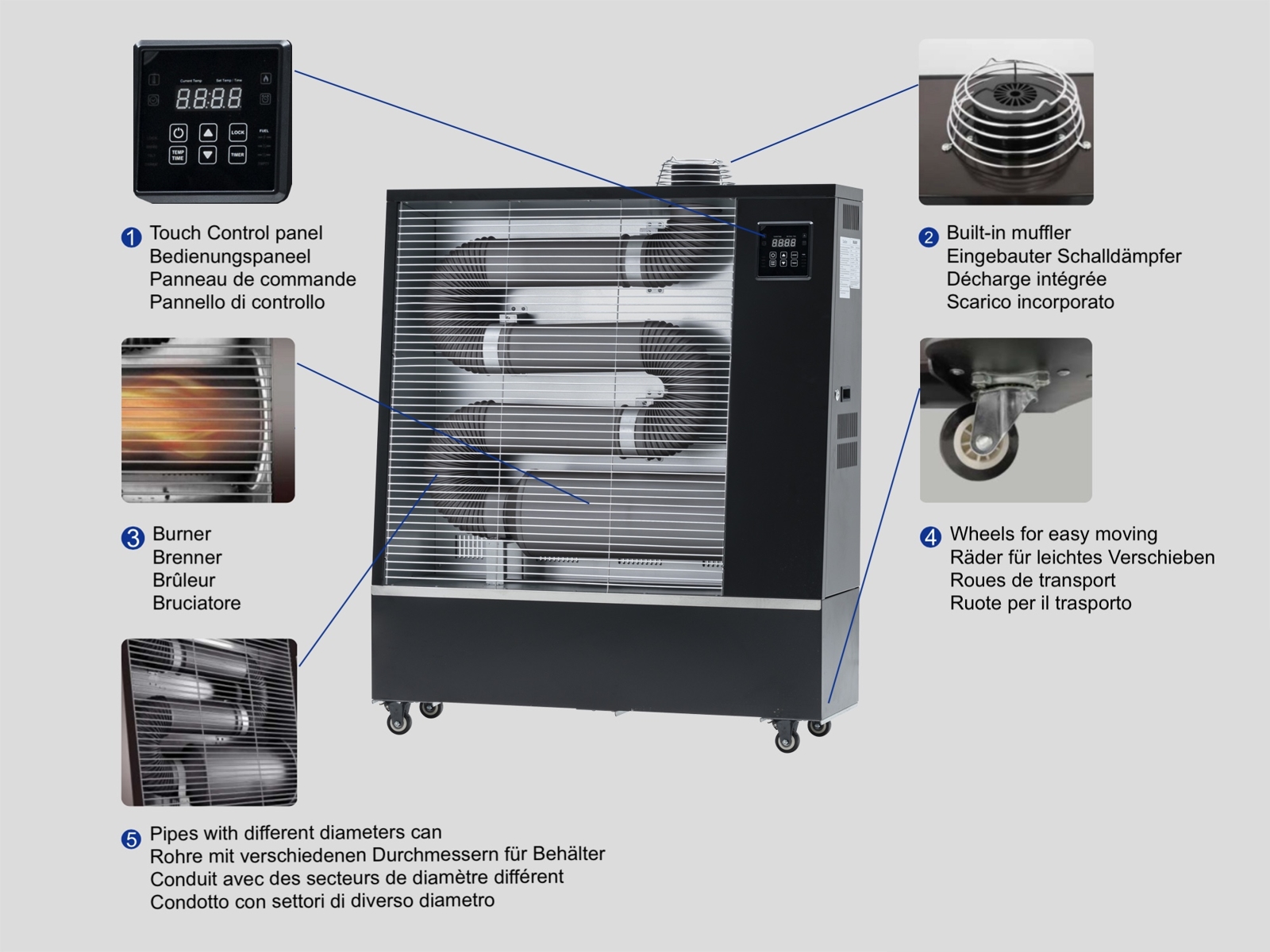 No odors and does not require an exhaust pipe, thanks to the advance burning process