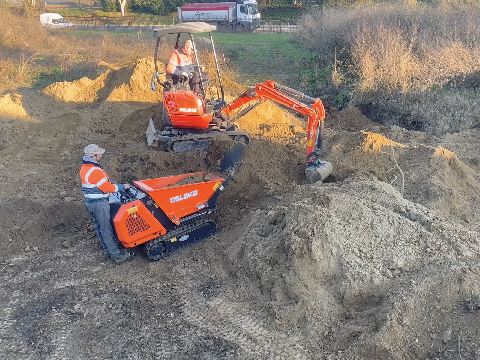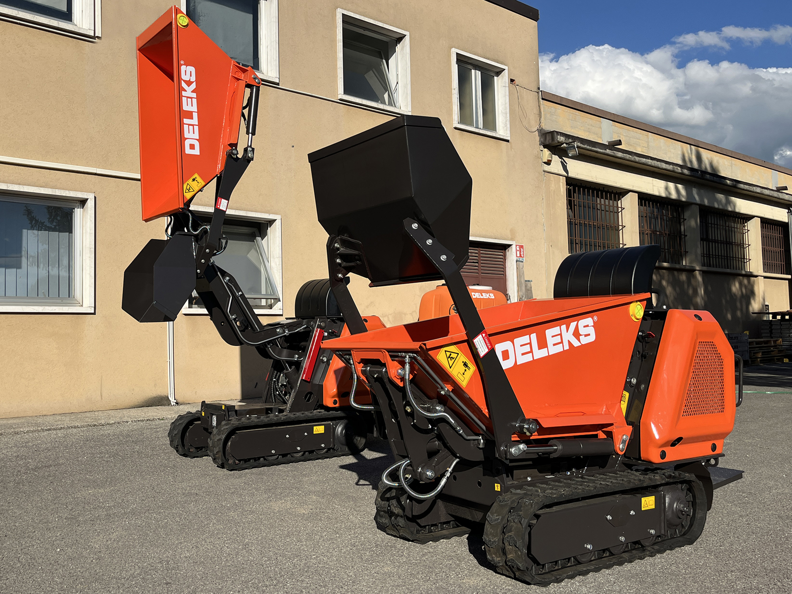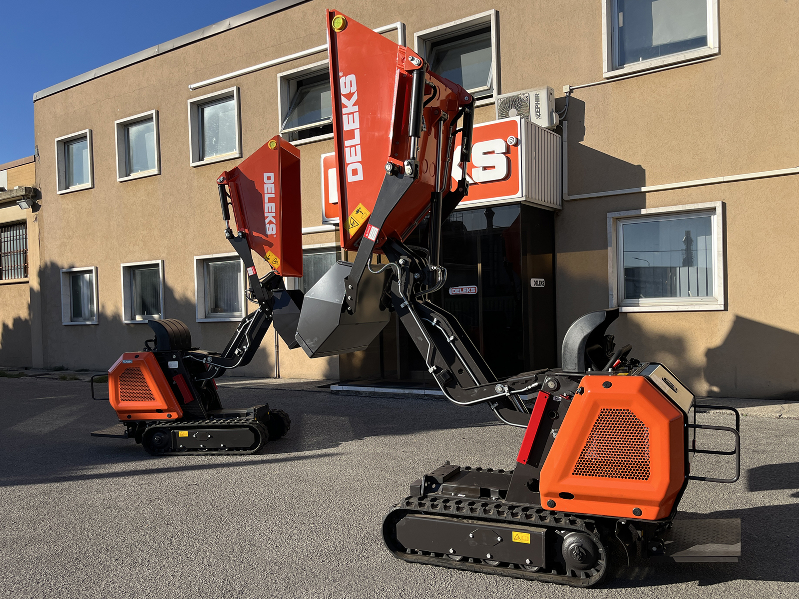 DELEKS® M8000-BS Zelfladende minidumper op rupsbanden, hoge kiepcapaciteit, hydrostatische transmissie, bestuurdersplatform, Briggs&Stratton-motor, elektrische start.