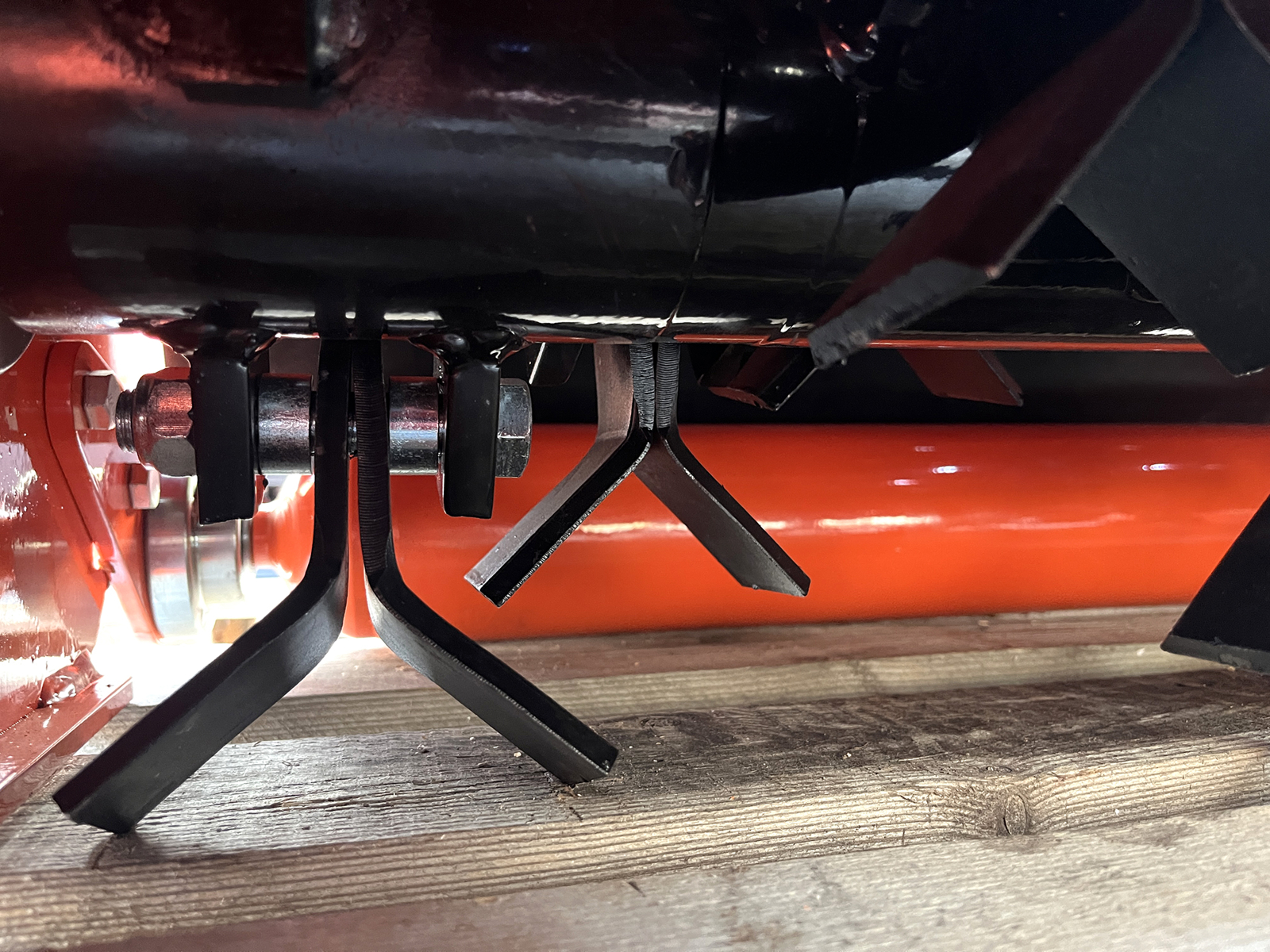b) De messen draaien in beide richtingen (u kunt de olieleidingen omkeren of een dubbelwerkend pedaal gebruiken).