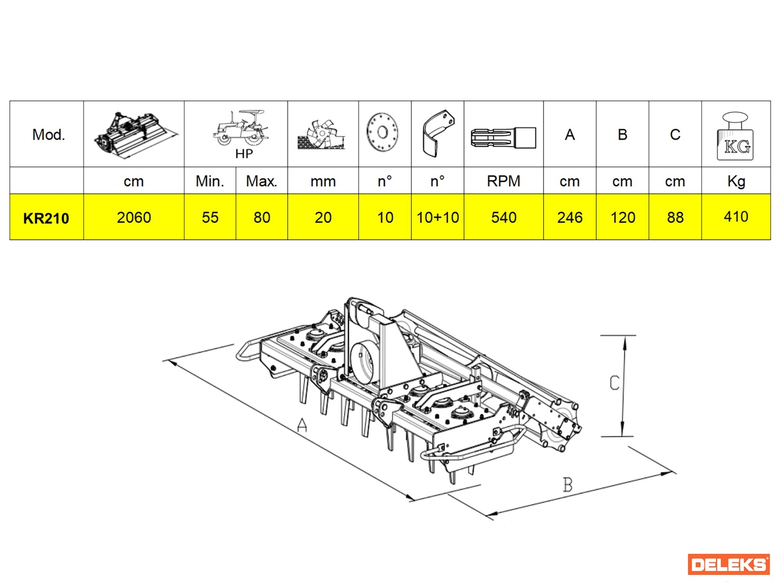 De KR-serie rotorkopeggen zijn ontworpen voor kleine bedrijven en voor het werken in speciale gewassen zoals groenten en fruit en wijngaarden. Het compacte ontwerp en het lichte gewicht maken deze machine geschikt voor tractoren met een laag vermogen. Het speciale ontwerp van de messen maakt het mogelijk de grond te breken met effectieve besparingen op het brandstofverbruik.