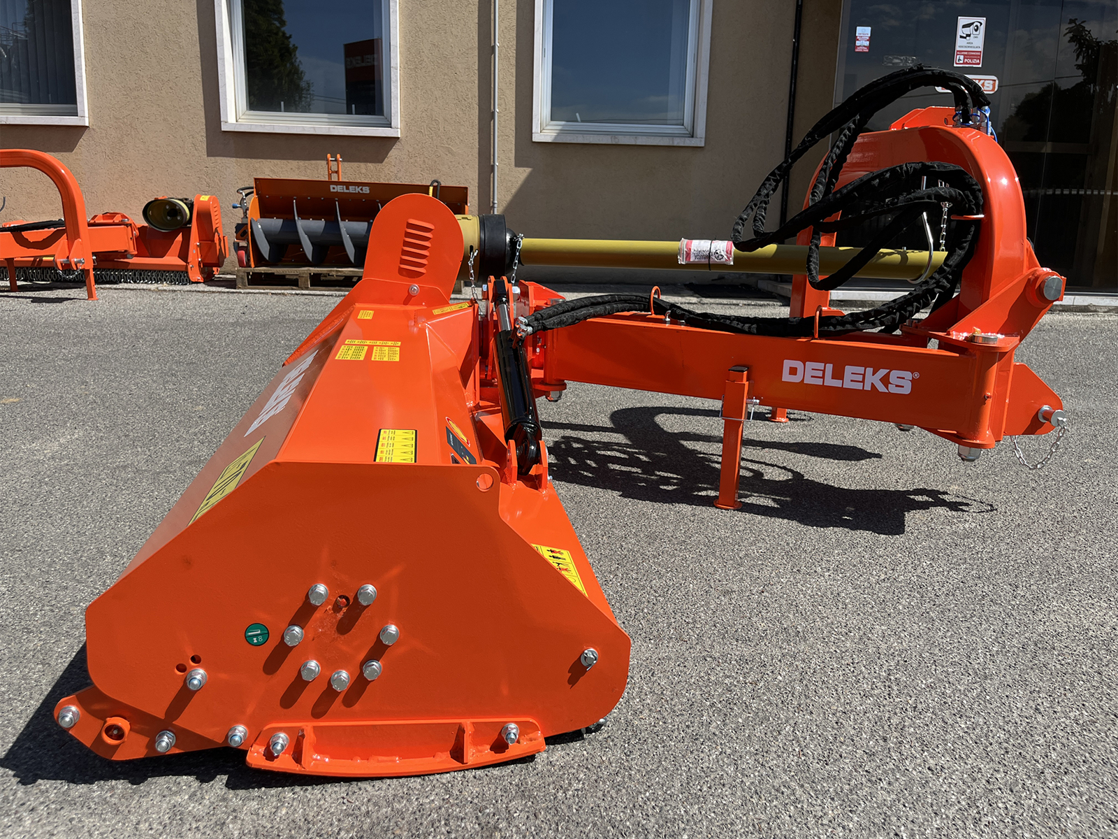De Deleks verstek klepelmaaier ruimt bermen en sloten buiten het spoor en in schuine werkstand, terwijl hij in verticale werkstand heggen en taluds snoeit. Dankzij de versnellingsbak in het midden van de machine kan de mulcher ook centraal achter de trekker worden aangedreven, waardoor hij ideaal is voor werk in smalle rijen.