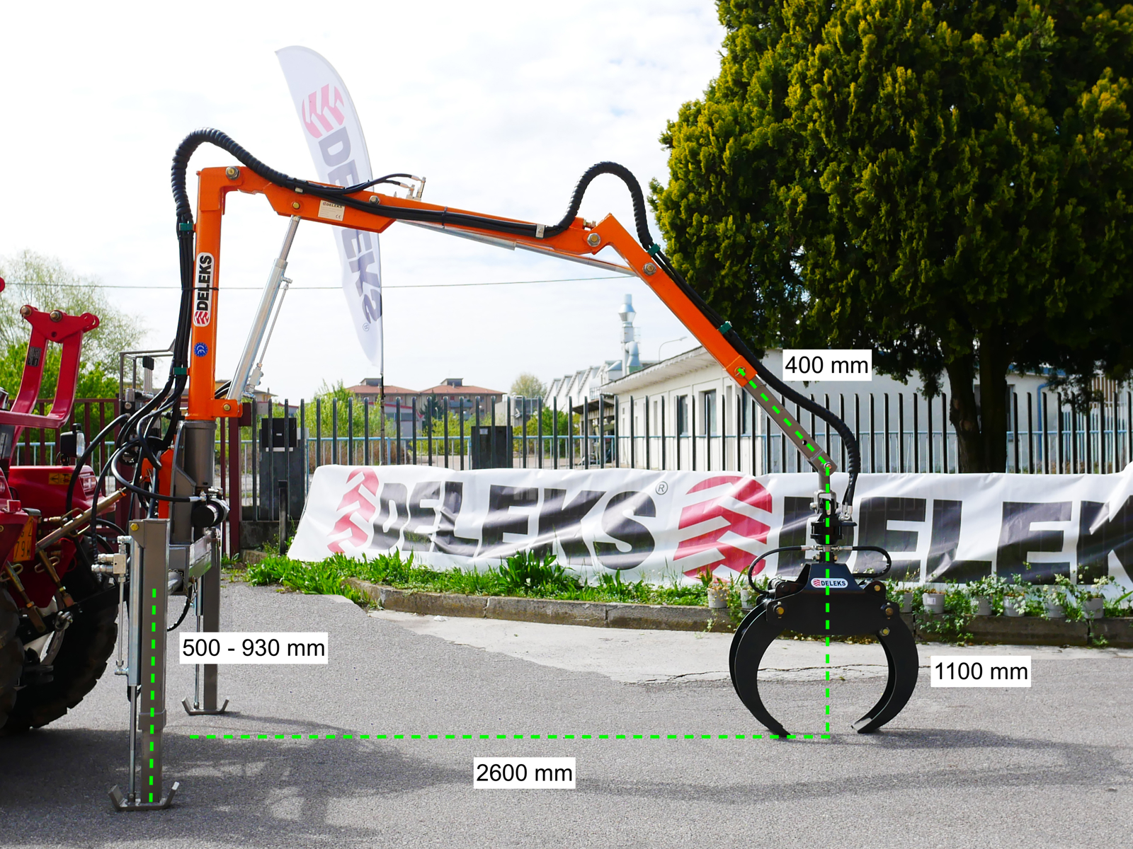 Bosbouwkraan inclusief houtklem voor achteraanbouw, geschikt voor tractoren vanaf 30 PK - DELEKS®- Alle hydraulische onderdelen "Made in Italy" - Houtgrijper DK 10 met 1t rotator van het merk Lombarda Ingranaggi GR10.