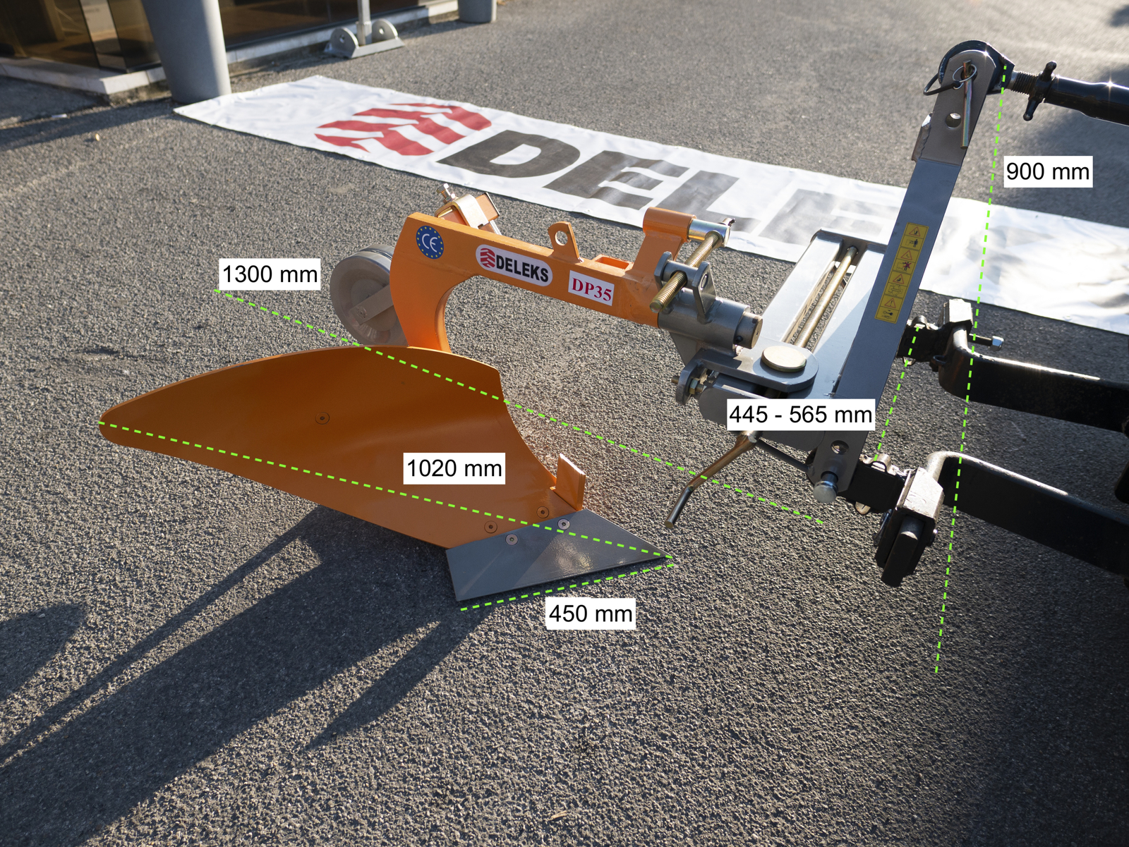 DP-35, voor het bewerken van grond met een grote verscheidenheid aan texturen (zacht, zanderig, stevig, enz.). Bijzonder geschikt voor smalspoortrekkers zoals Carraro Tigre, John Deere serie 2 - 3, Pasquali, Kubota, NEW Holland Boomer 30 - 40, Goldoni, Kramer, Massey Ferguson, Fendt 209, Same Solaris en andere kleine trekkers met maximale breedte 1400 mm en maximaal gewicht 1800 kg, vermogen 25-40 pk. Universele driepuntsophanging categorie 1 (penhaak 19 - 22 mm). CE - certificering, 2 jaar garantie.