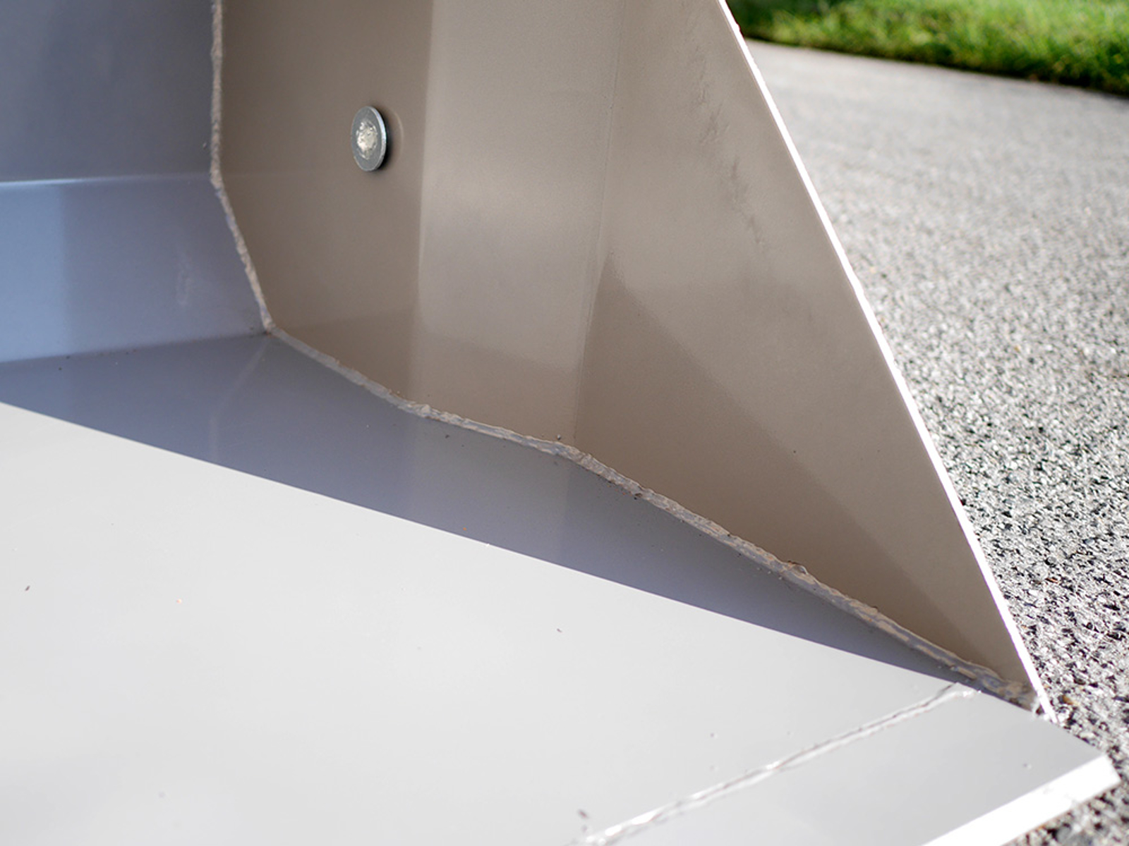 Der Rahmen fügt sich optimal in die abgekanteten Seitenbleche ein, wodurch die Heckschaufel noch kompakter wird.
