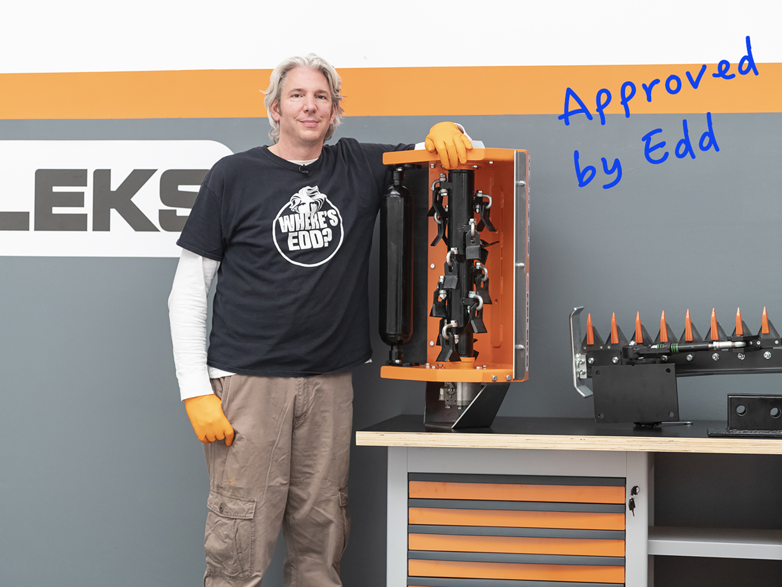 b) De messen draaien in beide richtingen (u kunt de olieleidingen omkeren of een dubbelwerkend pedaal gebruiken).
