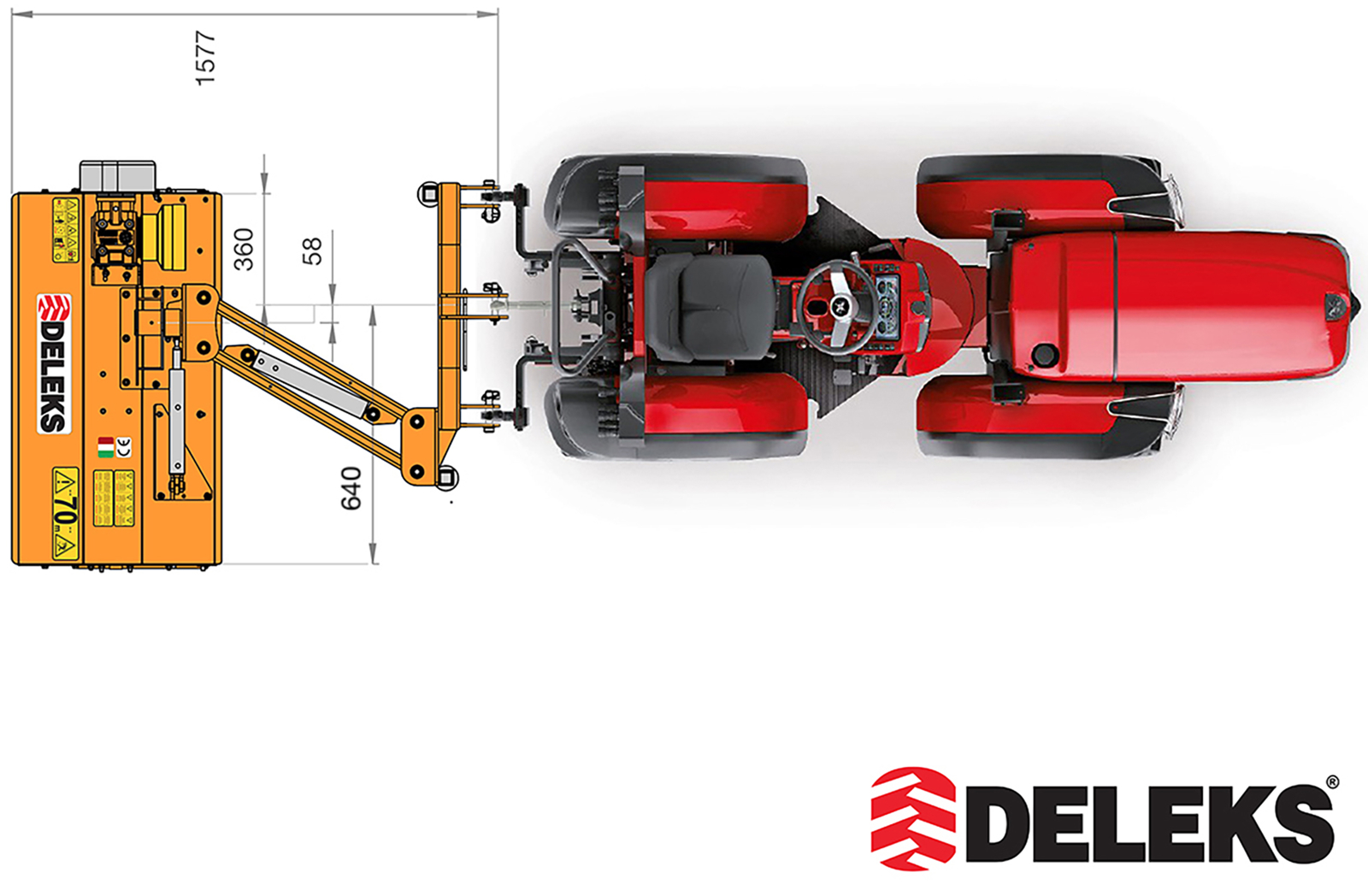 Buiten het spoor en in schuine werkpositie reinigt de Deleks hellingmaaier bermen en sloten, terwijl hij in verticale werkpositie heggen en hellingen trimt.