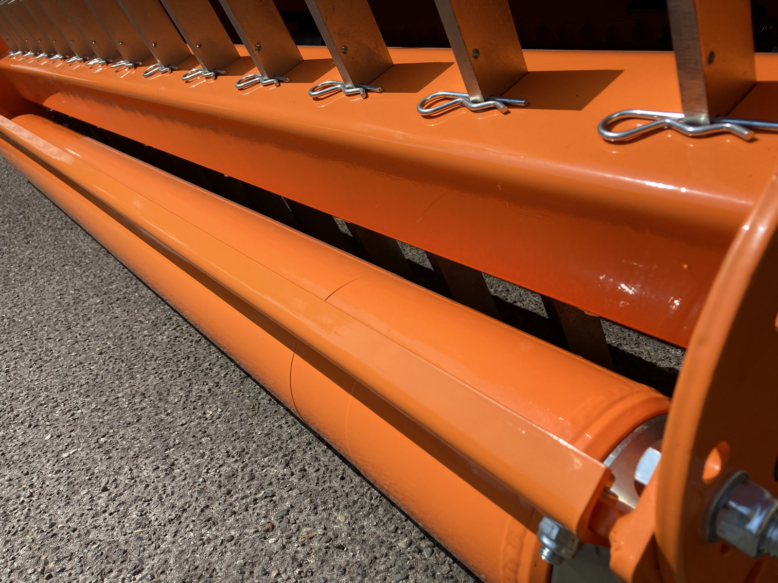 TORO-200 klepelmaaier met klepelhamers + verticuteermes of klepelhamer en hydraulische zijdelingse verstelling.