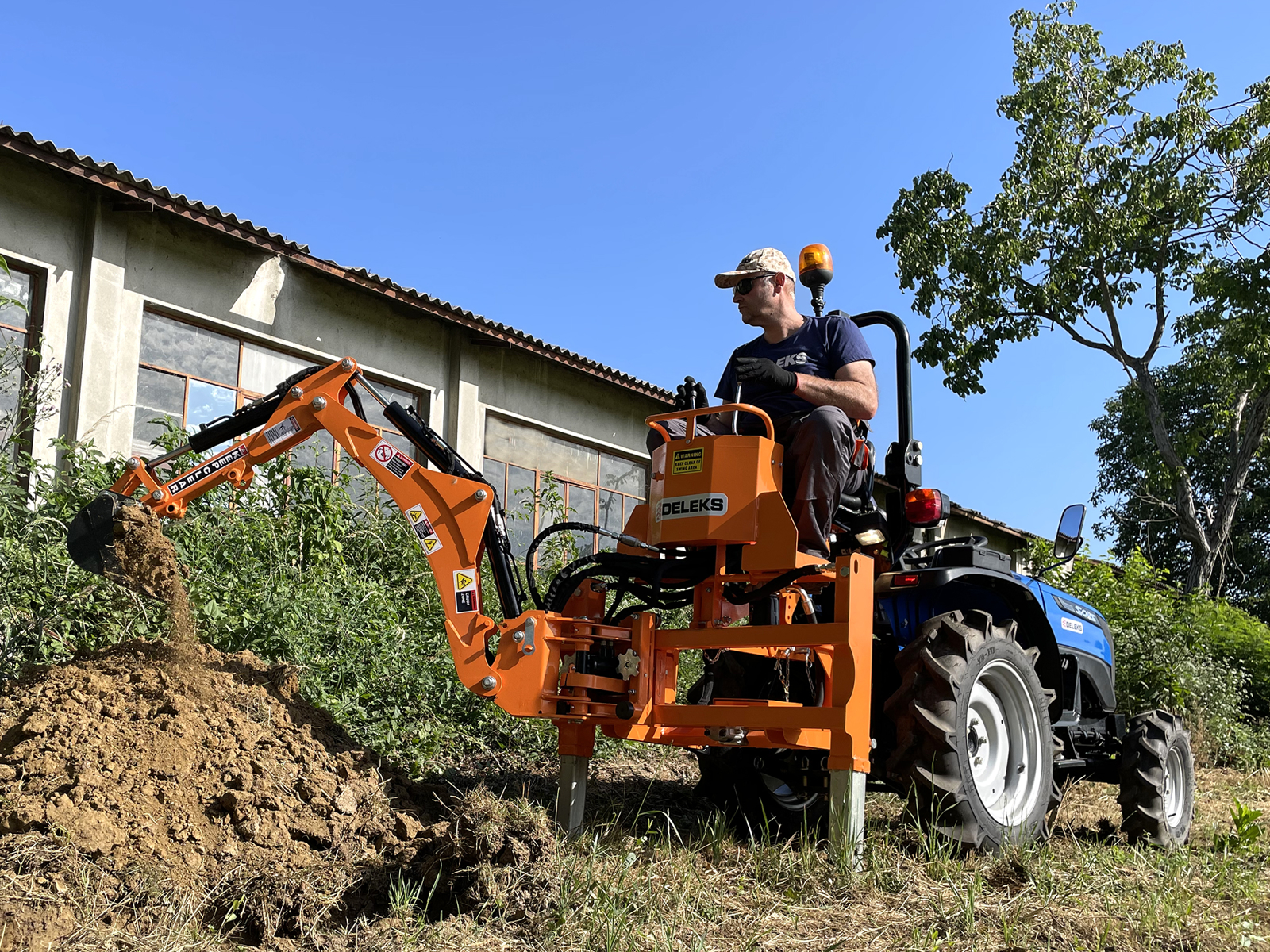 Universele minigraafmachine voor tractor - DELEKS® - Mechanische zijdelingse verschuiving - 358 kg - Externe hydraulische pomp.