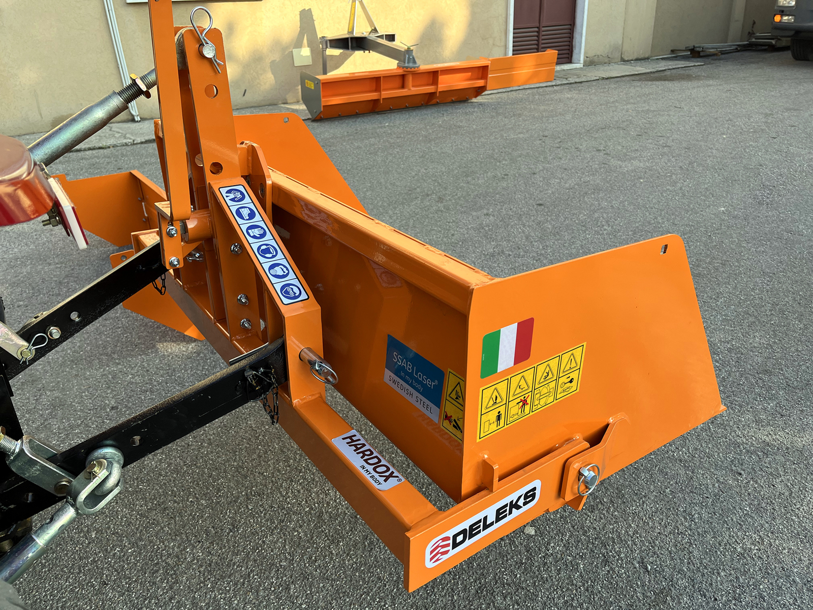 Mechanische grondbak "Made in Italy" voor het laden en vervoeren van diverse materialen zoals grind, turf of hout, maar ook voor het sneeuwruimen en egaliseren van bodems van diverse aard.