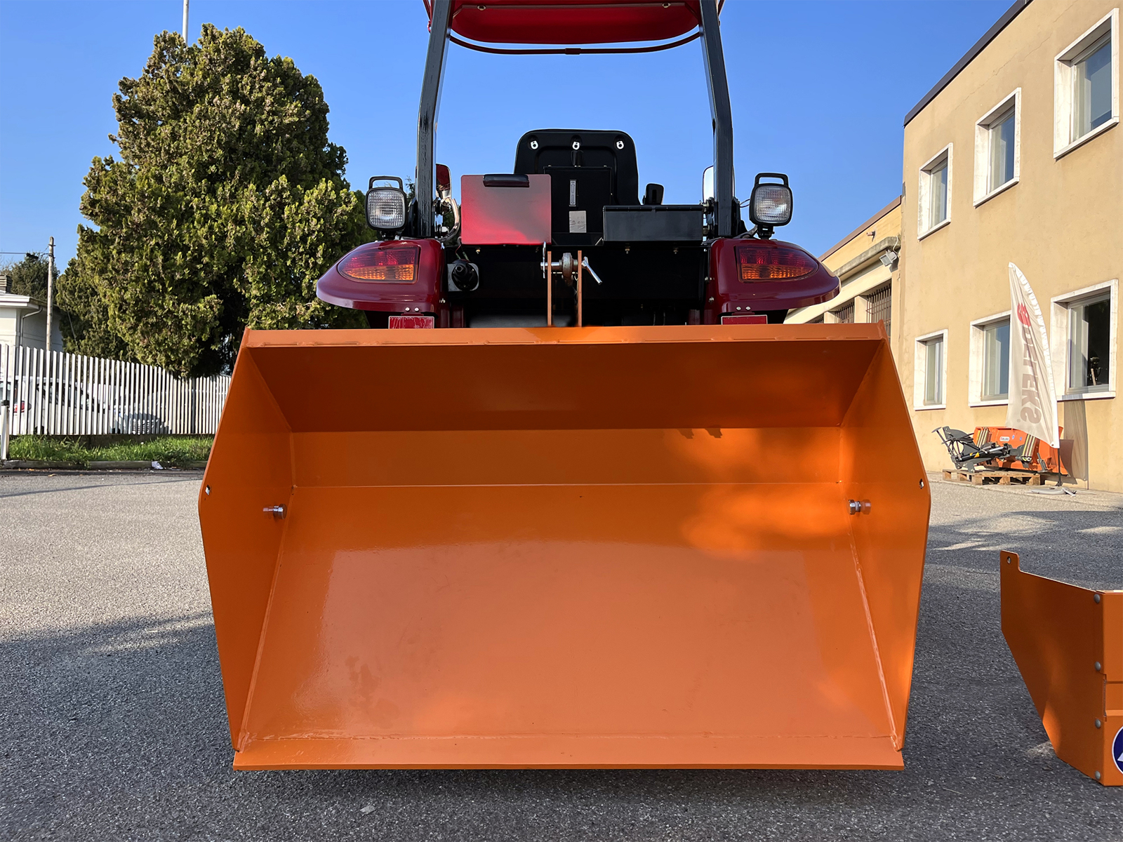 Hydraulische grondbak "Made in Italy" voor het laden en vervoeren van diverse materialen zoals grind, turf of hout, maar ook voor het sneeuwruimen en egaliseren van bodems van diverse aard.