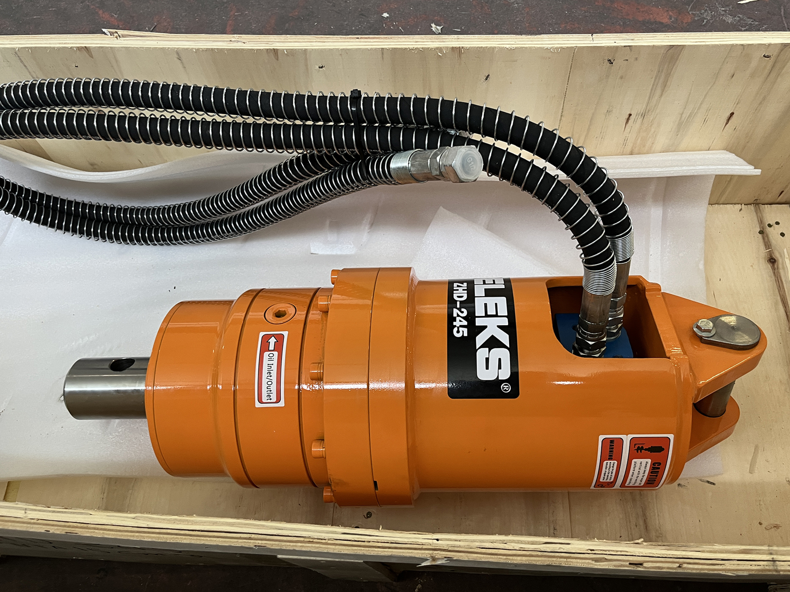 SLUITENDe DELEKS® ZHD-245 hydraulische grondboor/rotator is geschikt voor minigravers, wielladers, landbouwtrekkers of voorladers.