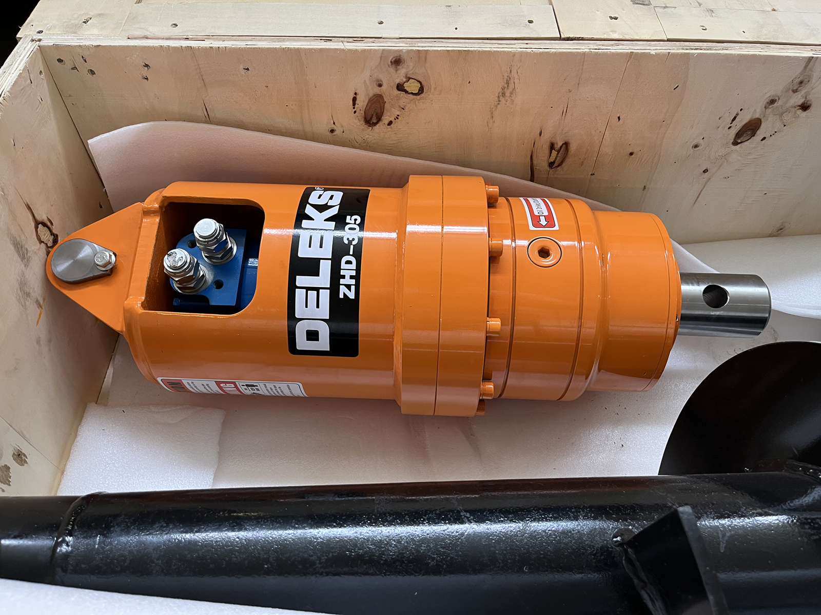 SLUITENDe DELEKS® ZHD-305 hydraulische grondboor/rotator is geschikt voor minigravers, wielladers, landbouwtrekkers of voorladers.