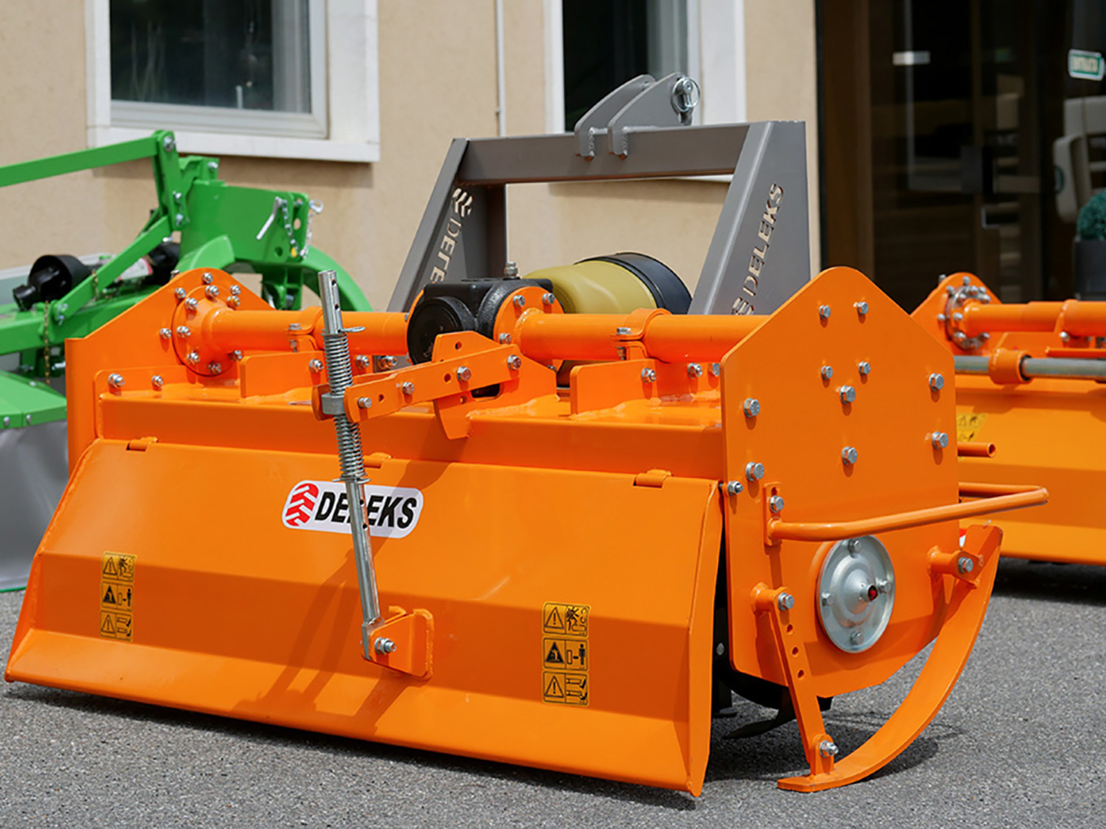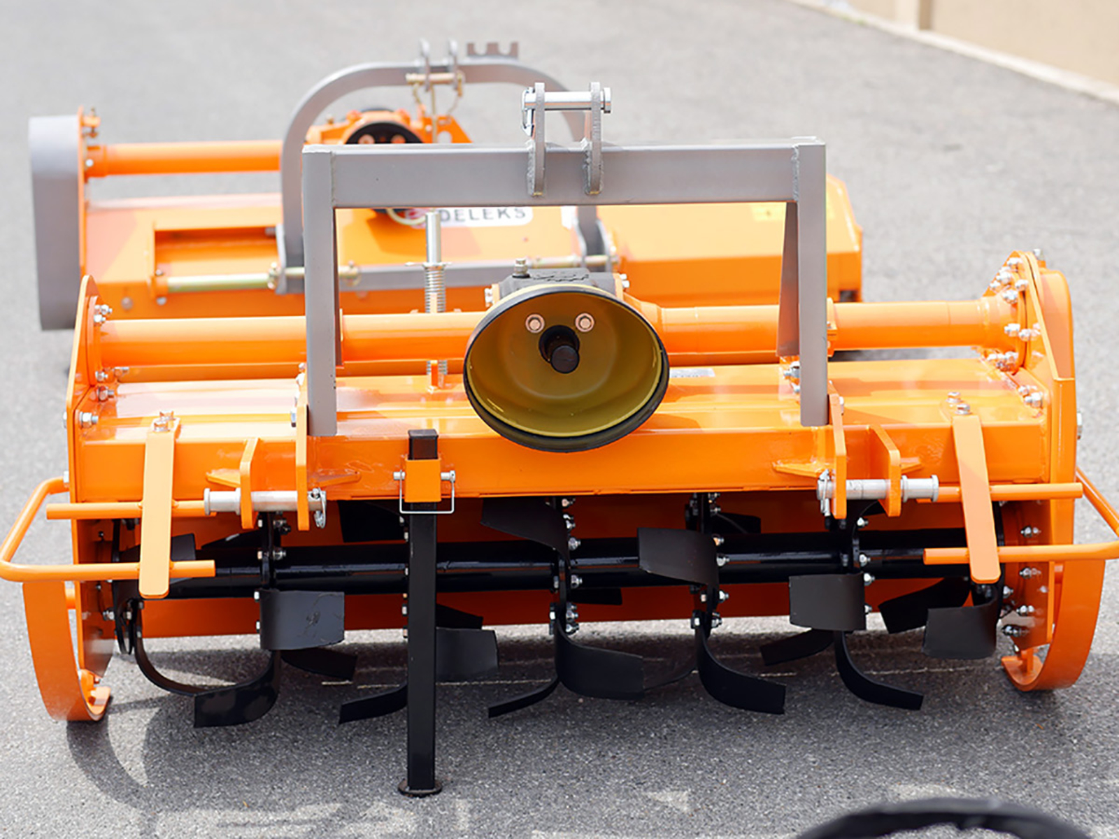 Zware roterende grondfrees voor grondbewerking in de wijnbouw en boomkwekerij, kwekerijen, moestuinieren of algemeen tuinieren en landschapsarchitectuur. Geschikt voor middelzware tractoren met banden of rupsbanden van 35 tot 60 pk zoals New Holland TK4000, T3030, T3F, John Deere serie 3-4, Landini Mistral, Carraro Tigrone, Kubota L, Deutz-Fahr, Lamborghini EGO 45-55, McCormick, Same Solaris, en nog veel meer. Universele 3-punts koppeling cat. 2. CE - Certificaat, 2 jaar garantie.