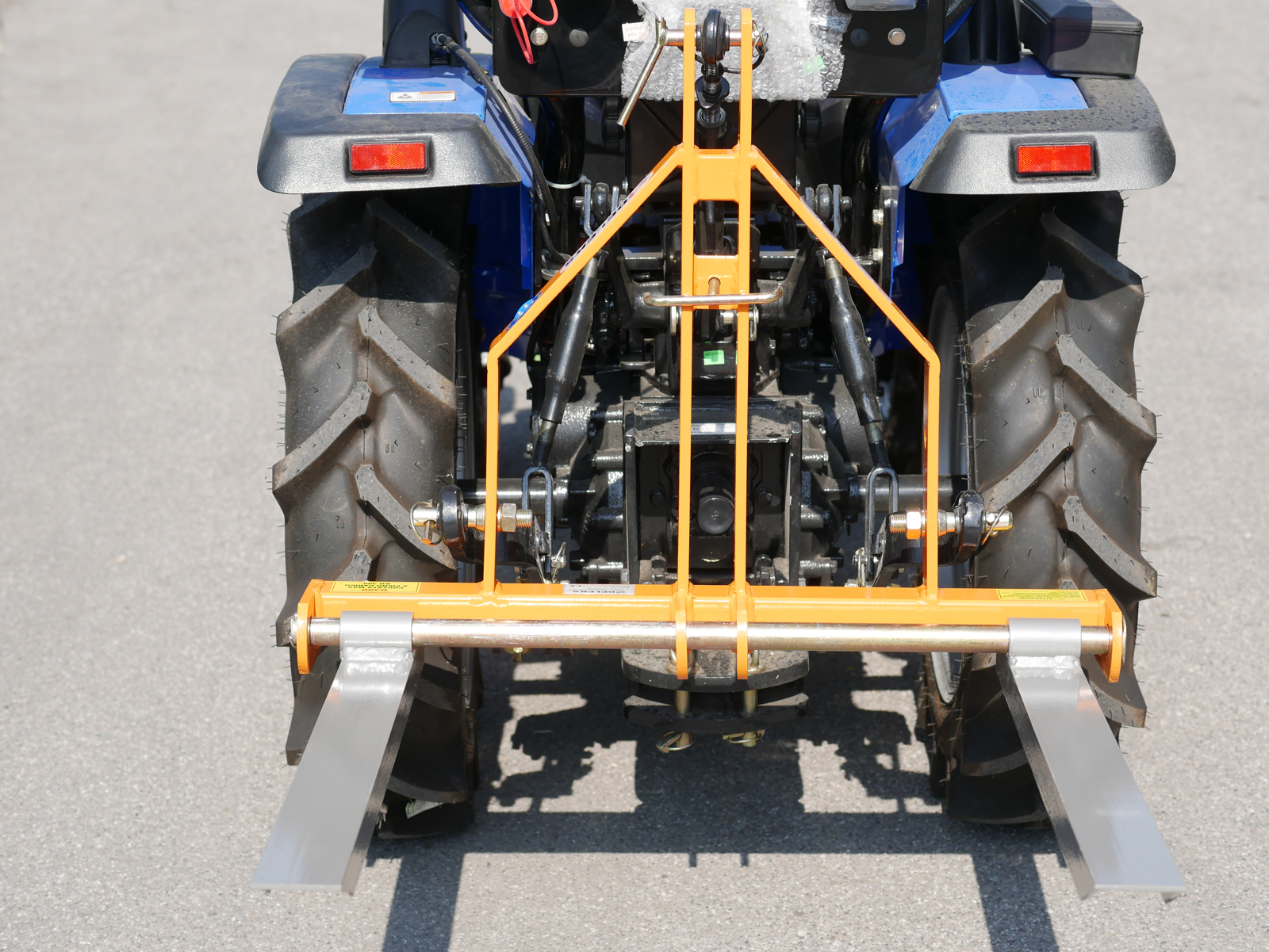D-300 palletvork voor het laden en transporteren van gepalletiseerde goederen. Max. Hefvermogen 300 kg. Ontworpen in een bijzonder lichte uitvoering voor maximale benutting van het vermogen van kleine tractoren van 12 - 45 pk zoals Pasquali, Kubota B en bX, New Holland Boomer en TI13, Goldoni Base 20, John Deere serie 1-2, Deutz, Steyr, Gudbrod en vele andere, met universele 3-punts hefinrichting categorie 1 (penhef 19,0 - 22,0 mm). CE - certificering, 2 jaar garantie.