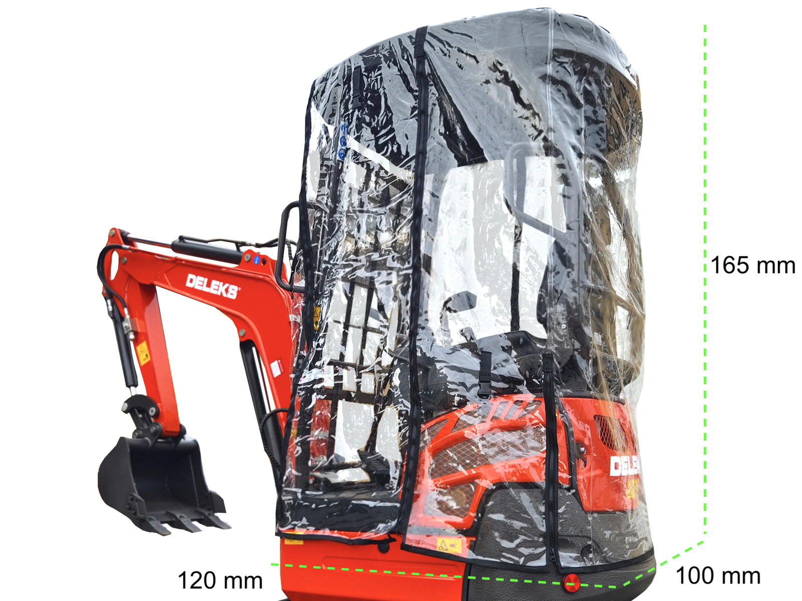 SLUITENOf het weer nu meewerkt of niet - de universele regen- en windhoes is de perfecte oplossing voor de DELEKS® M180 - M180SE (XN18 - XN20) minigraver.